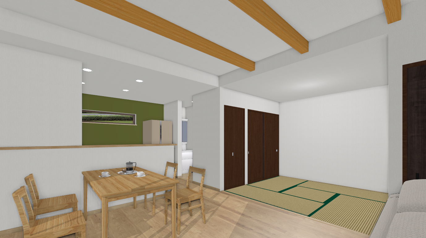 リビングにタタミコーナーのある間取り。